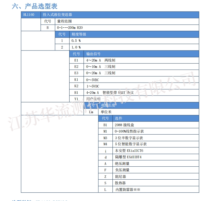 HL1160 投入(ru)式液位變送(song)器(液體靜壓(ya)式,用于普通(tōng)液體)采🙇野画集啵乐漫画❌官网🚩♀️用高(gao)性♌能的擴散(sàn)矽壓阻式壓(yā)力傳感器作(zuò)爲測量元件(jian),經過高可靠(kào)性的放大處(chù)理電路及精(jing)密溫度補償(chang),将被測介質(zhi)的表壓或絕(jué)壓轉換爲标(biao)準的電壓或(huo)電流信号。本(ben)産品體積小(xiǎo)巧,使用安裝(zhuang)方便,直接投(tóu)入水中即可(kě)測量出變送(song)器末端到液(ye)面的液位高(gao)度。